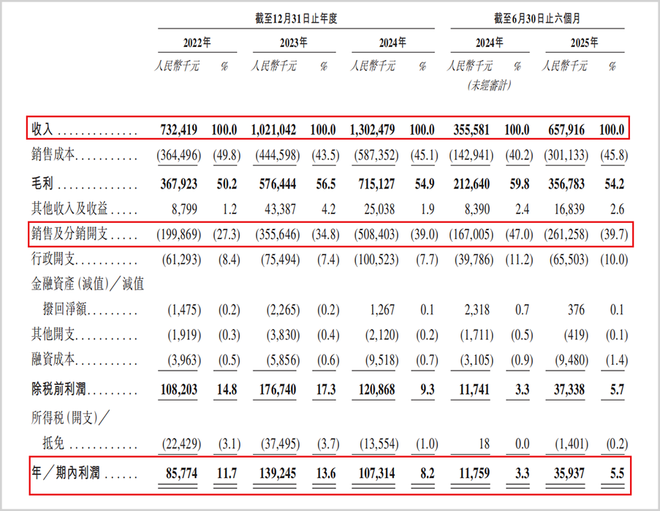 招股书显示,2022年至2025年6月底(以下简称:报告期),公司的营收分别为7.32亿元、10.21亿元、13.02亿元和6.58亿元,整体展现出不错的增长势头。然而,同期公司的净利润却分别只有0.86亿元、1.39亿元、1.07亿元和0.36亿元,净利率从最高的13.6%下滑至5.5%。这也暴露出坦博尔在成本控制方面存在的巨大压力,而这一问题与公司的战略选择和行业竞争态势密切相关。