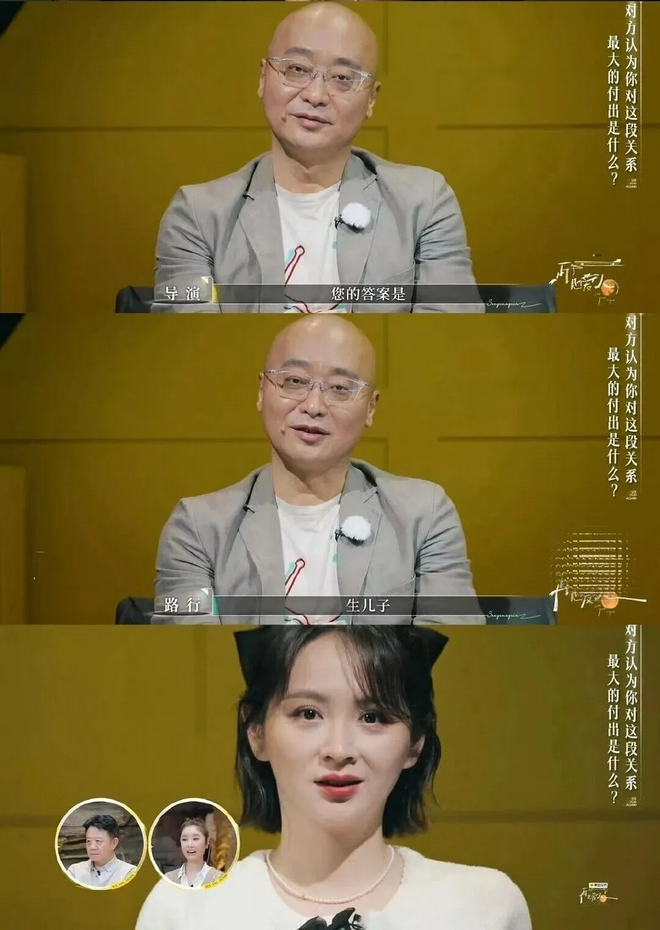 率先出圈的是邓莎路行夫妻,58岁的路行在婚姻体检中的发言引发争议。他直言邓莎在这段婚姻里最大的付出是生儿子;他对妻子的工作内容也不甚清楚,"反正她就演那些宫女那些丫鬟。"