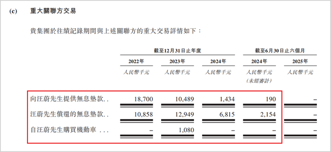 此外,不同集团与汪蔚个人之间存在多笔值得关注的关联交易。例如,公司曾以108万元高价向汪蔚购买机动车;为其提供超3000万元无息垫款;向其持股公司支付超150万元服务费等。这些频繁发生且定价存疑的关联交易,进一步加剧了投资者对公司合规经营的疑虑。对于拟上市企业,健全的公司治理、透明的关联交易和严格的合规性是立足资本市场的基石,这些方面暴露的潜在风险不容忽视。