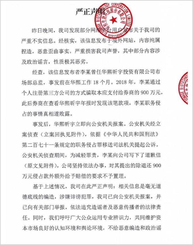 和东方甄选果断回击谣言一样,面对前员工李振在境外平台发布的所谓“内幕”,华熙生物也在第一时间发布了严正声明,明确指出其内容“纯属捏造,恶意歪曲事实”,并强调公司保留依法追究法律责任的权利。