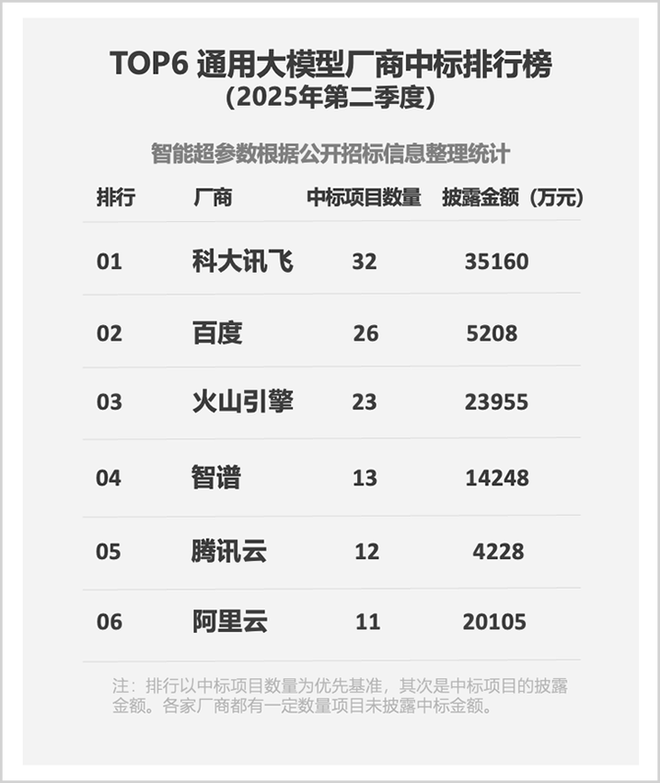 IDC数据显示,2024年大模型解决方案市场规模已达31.8亿元,其中,科大讯飞市场份额居首位。《中国大模型中标项目监测与洞察报告(2025年Q2)》显示,科大讯飞中标项目数量、中标金额在2025年第二季度依然实现双第一。
