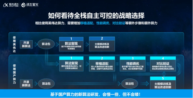 科大讯飞曾两次被列入美国实体清单,但在极限施压,无法获得英伟达芯片的极端环境下,实现自力更生,并在艰苦环境下锻炼出自研力量。