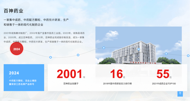 官网显示,江西百神药业股份有限公司创建于2002年,是一家集中成药、中药配方颗粒、中药饮片研发、生产和销售于一体的现代化制药企业。