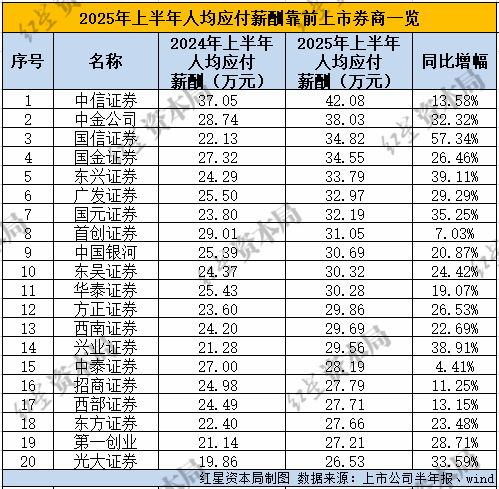 此外,上半年多家券商人均薪酬同比增长超30%。