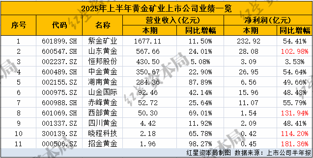 此外,山金国际(000975.SZ)、赤峰黄金(600988.SH)、西部黄金、四川黄金(001337.SZ)、招金黄金等多家A股公司,上半年也均实现营收、净利润双增长。