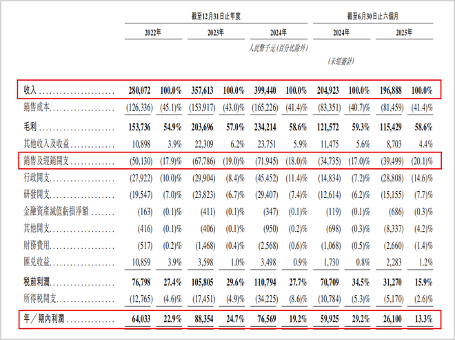 招股书显示,2022-2025年6月底(简称:报告期),沪鸽口腔的营业收入分别为2.80亿元、3.58亿元、3.99亿元和1.97亿元,相应的净利润分别为0.64亿元、0.88亿元、0.77亿元和0.26亿元。纵观沪鸽口腔近年来的财务表现,2024年公司净利润同比下滑12.5%;在2025年上半年,营收和净利润双降,营收下降3.9%,至1.97亿元,净利润遭遇腰斩,降幅达到了56.45%。