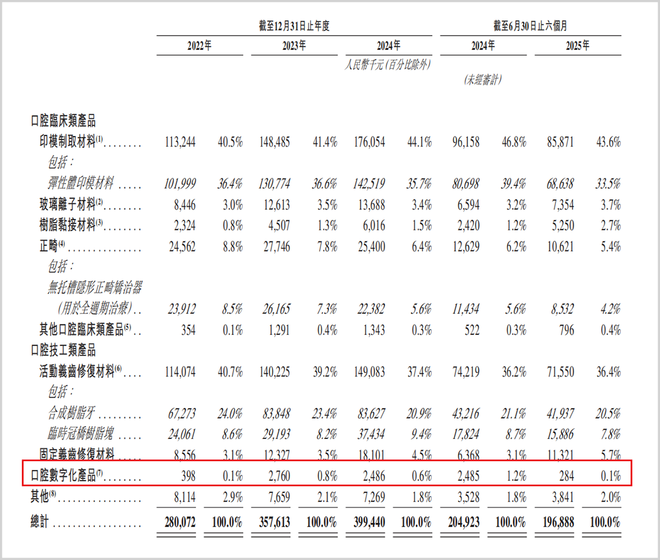 公司超过60%的收入依赖于合成树脂牙等低附加值耗材,这类产品技术门槛低、同质化严重,利润空间易受政策挤压。而在代表行业未来的隐形正畸领域,沪鸽的短板更为凸显——其市占率长期不足2%,与龙头企业时代天使形成鲜明对比:后者以41.3%的市场份额占据主导地位,2024年矫治案例数高达35.94万例,同比增长46.7%,几乎垄断了行业增长红利。