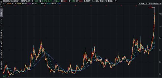 资本市场从来不吝奖赏行业的佼佼者。洛阳钼业十年成长史上,股价亦从低点2.63元,涨至目前的12.54元,股价上涨377%。