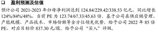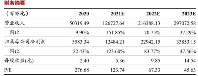 业绩预估也极其乐观,如上表所示,2021年至2023年净利润分别增长123.6%、83.77%、47.56%,相比2020年净利润增长了5倍。而实际业绩是净利润增长了6.9倍,反而是低估了。