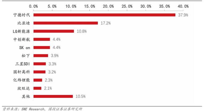 图:2024年全球动力电池公司市场份额