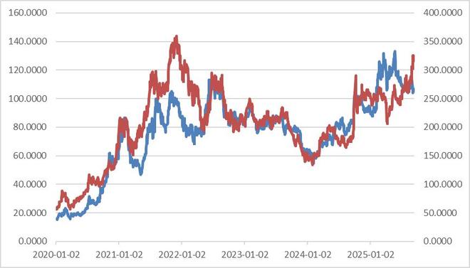 鉴于二者行业密切关联,其股价走势呈现一定的趋同性。宁德时代股价历史性高点为今年9月15日,最高触及371.52元,创下新高,人称"宁王"。