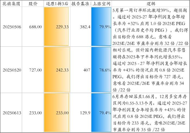 回溯比亚迪相关股价预测,最乐观的预测在2025年。花旗集团在5-月预测其股价(按1拆3后)分别为229.33元、242.33元、233元,相对当时基准日上涨空间在79%左右。采用PEG估值,估值取决于未来三年利润增速及PEG系数。