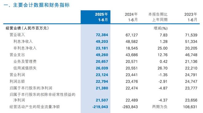 2025年8月29日,民生银行发布2025年上半年财报,营收723.84亿元,同比增长7.83%;归属净利润213.8亿元,同比下降4.87%;扣非净利润215.07亿元,同比下降4.37%。