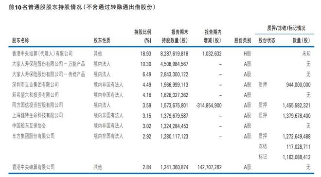另一方面,由于经营状况不佳,诸多大股东还将手持的民生银行股份质押了出去。据天眼查数据显示,截至2025年6月末,民生银行前十大股东中,深圳立业、同方国信、上海健特、东方集团质押的股份比例分别为47.99%、92.5%、100%、99.42%。