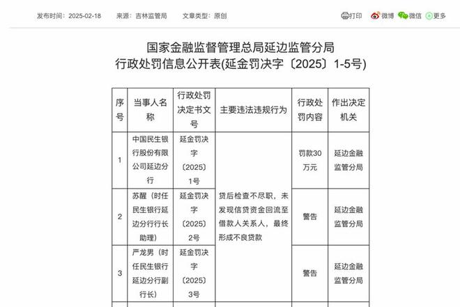 企业预警通显示,2020年以来,民生银行累计收到的千万级大额大单罚没金额超3.5亿元。仅2025年Q1,民生银行就收到34张罚单,罚没金额2410.67万元,位居股份制银行第一。罚单涉及违法行为包括违反账户管理规定、违反清算管理规定、占压财政存款或者资金等。可以说,昔日被誉为"小微之王"的民生银行,已沦为了"罚单之王"。