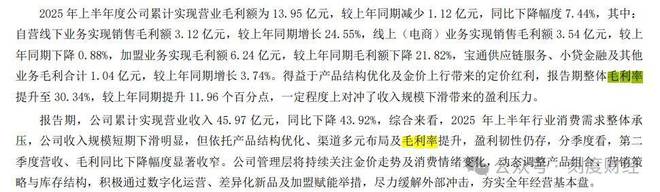 与此同时,周大生珠宝首饰整体毛利率却逆势飙升至30.34%,较上年同期提升11.96%,创下近年新高。但这种"营收降、毛利升"反差,究竟是短期缓冲,还是长期破局的信号?真正的考验,或许才刚刚开始。