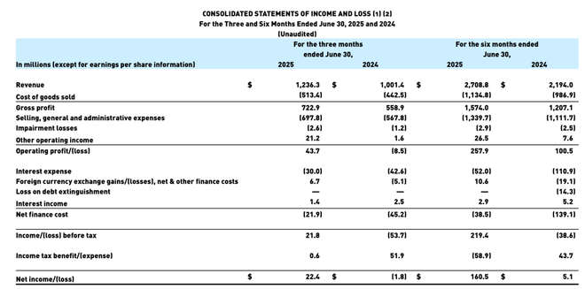 整体看,二季度亚玛芬毛利率增长270个基点至58.5%;调整后毛利率增长250个基点至58.7%;营业利润增长614%至4400万美元;调整后营业利润增长 130%至6700万美元,其中包括第二季度收到的1900万美元政府补助。