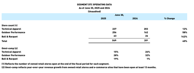 财报显示,截至今年6月末,萨洛蒙所在的亚玛芬户外运动部门门店数达到256家,同比增长58%。