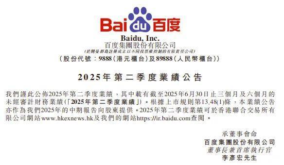 ▲百度2025年第二季度财报