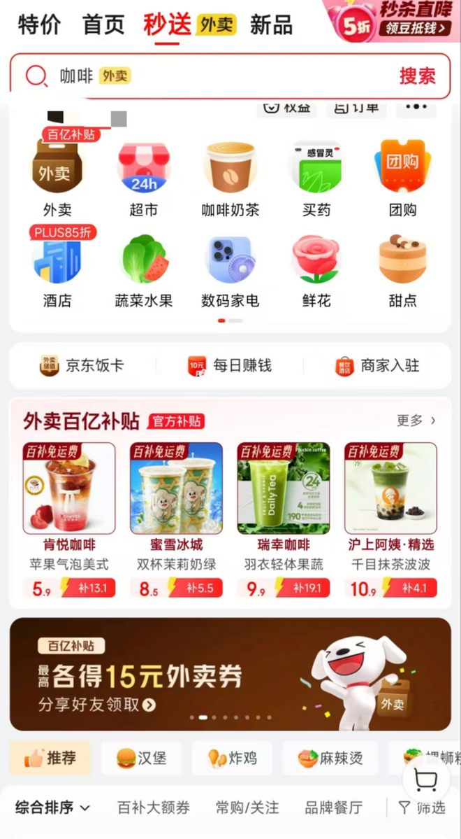 就当下来看,京东外卖补贴力度虽然没有刚开始几块钱喝杯咖啡那么夸张,但补贴力度也不小。